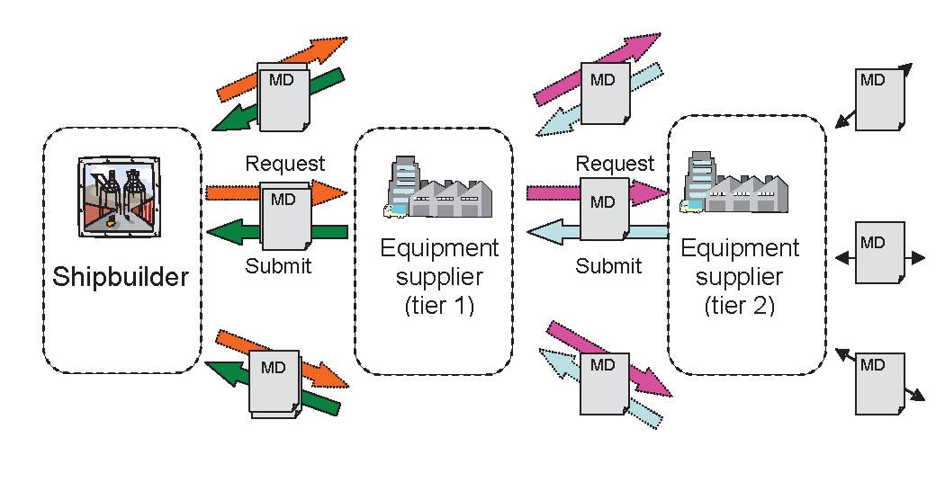 It is the Tier 1 supplier's duty to provide MD and SDoC. The Tier 1 suppliers may request from their own suppliers (Tier 2 suppliers) for relevant information if they cannot develop the MD based on the information available. Thus, the collection of data on hazardous materials may involve the entire supply chain. The information data flow is illustrated below: